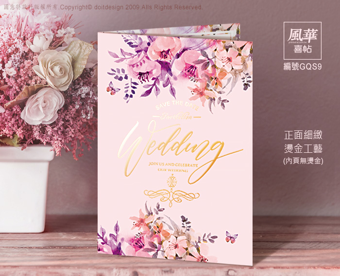 【GQS9】萊茵河畔粉紫-摺頁燙金喜帖