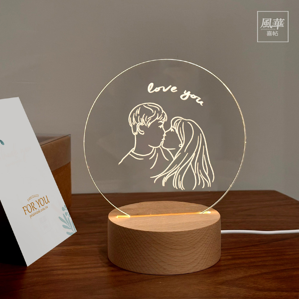 高質感雷射雕刻壓克力夜燈,搭配木質底座,點亮浪漫燈光為你加溫