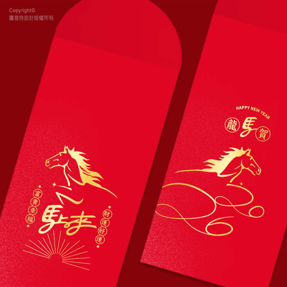 ●馬年燙金紅包袋-馬上來、龍馬賀。