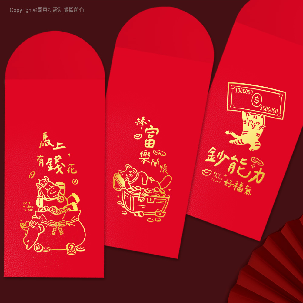 ●馬年燙金紅包袋-鈔能力、捧富、馬上有錢花。