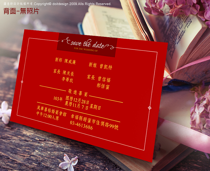 5.此為公版喜帖,若變更原版型設計或加印地圖、自己的圖,另產生編輯費用,請先詢問我們。
