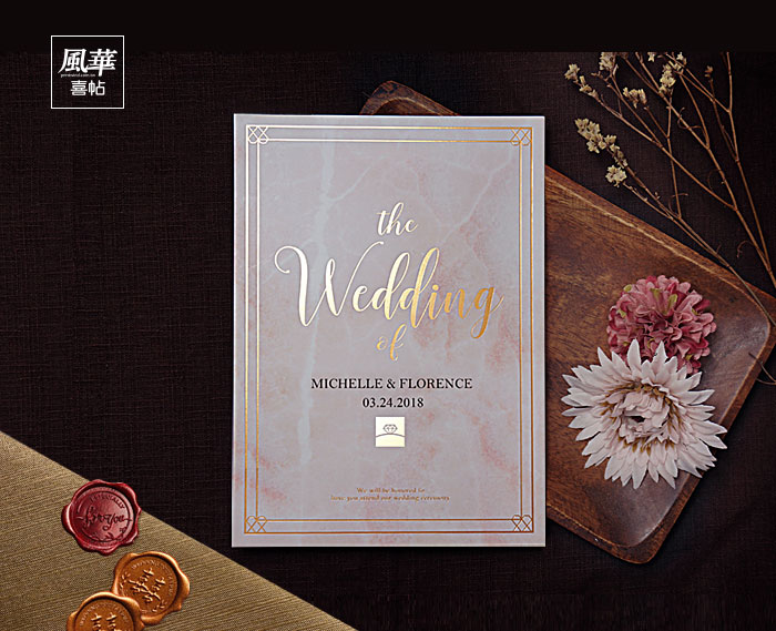 ●封蠟貼紙共有三個顏色可挑選:大理石紋紅色、玫瑰粉 、古銅金